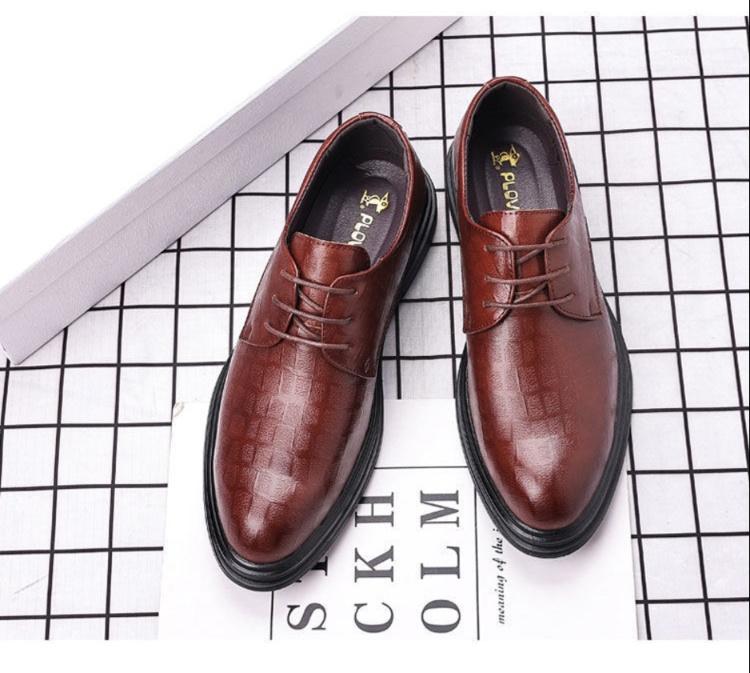 格子模様型押しの高級ビジネス向け茶色紳士靴