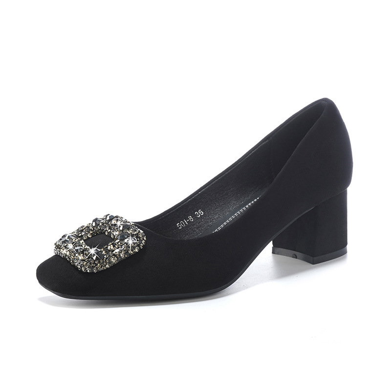 安定感のある太めのヒールデザインで長時間の着用でも疲れにくく快適な履き心地