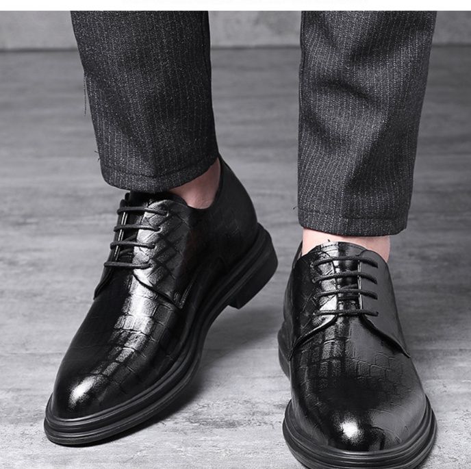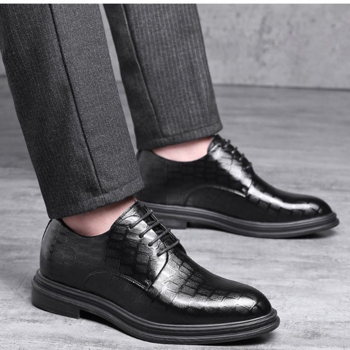 シンプルで洗練された紐靴デザインが、フォーマルからビジネスまで幅広く対応