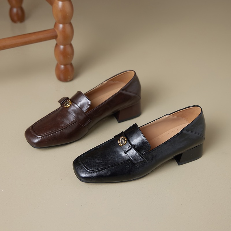 フラットに近い低めのヒールとゆとりのあるスクエアトゥで、長時間の着用でも疲れを全く感じさせません。