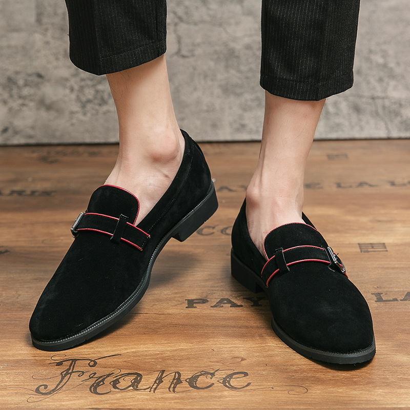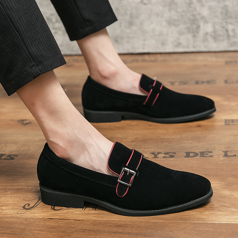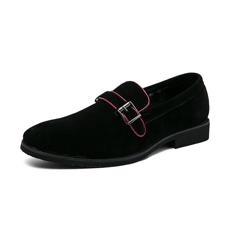 上質なスエード調素材を使用したメンズ向けのローファータイプのビジネスシューズです。 甲部分にあしらわれた金属バックルのアクセントが、シンプルながらも洗練された印象を演出します。 スリッポン仕様で脱ぎ履きがしやすく、忙しい朝の時間も快適です。 クッション性のあるインソールと適度なヒール高で長時間の歩行もサポートします。 ビジネスシーンはもちろん、カジュアルな装いにも合わせやすい万能な一足です。