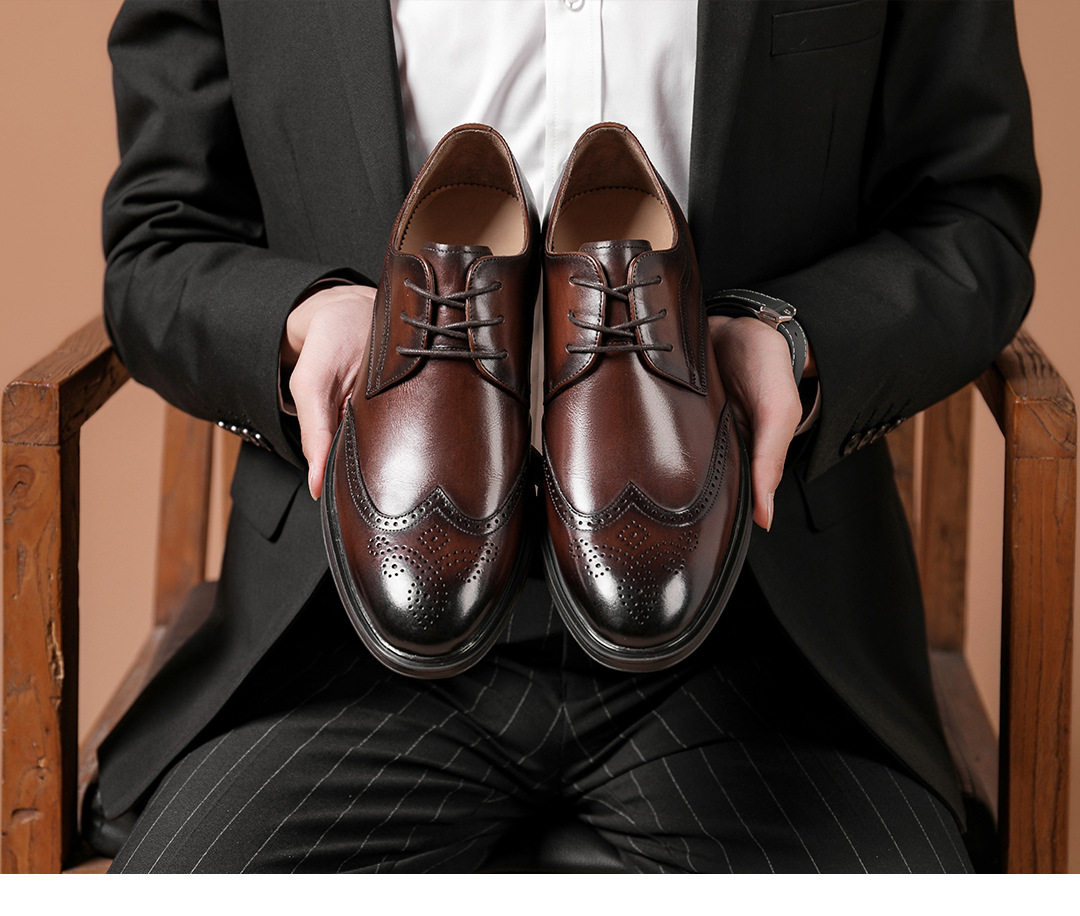 細かい穴飾りと曲線的な装飾が施された古典的なブローグ装飾により、洗練された紳士的な雰囲気を醸し出します。