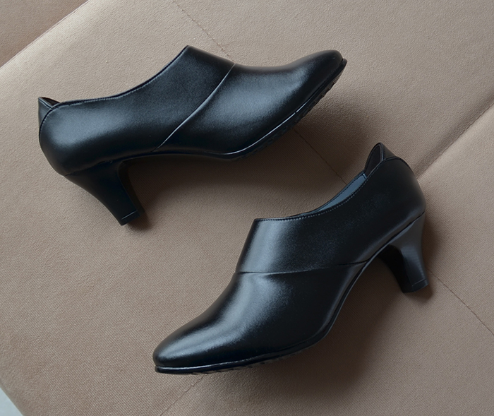 適度な高さの細身ヒールは、フォーマルからビジネスまで多様なシーンで活躍する実用的なデザインです。