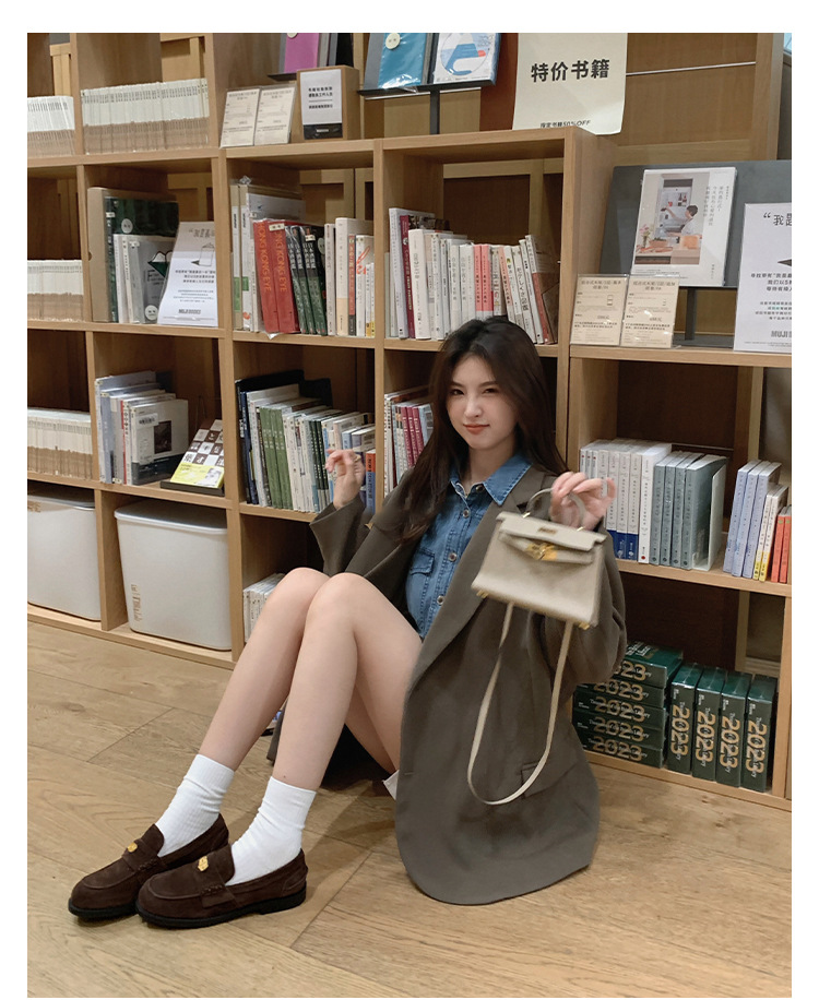 スエード素材の高級感とゴールドの金具が上品で落ち着いた印象を演出